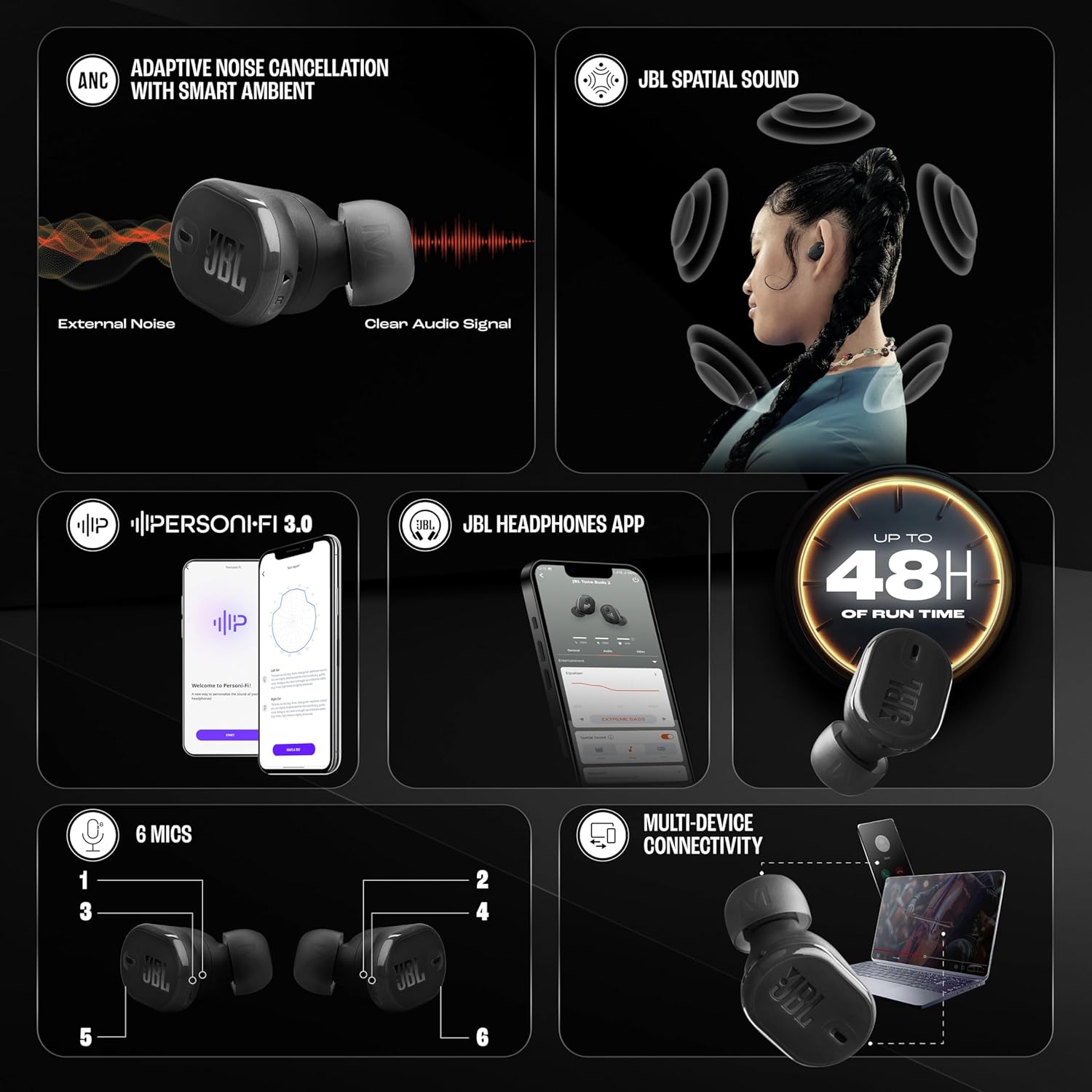 JBL New Launch Tune Buds 2 TWS, ANC Earbuds, 48Hr Playtime,Dual Connect, Ambient Aware, Relax Mode, 6 Mics for Clear Calls, Spatial Sound, Personi-Fi 3.0 (3 Color Options)