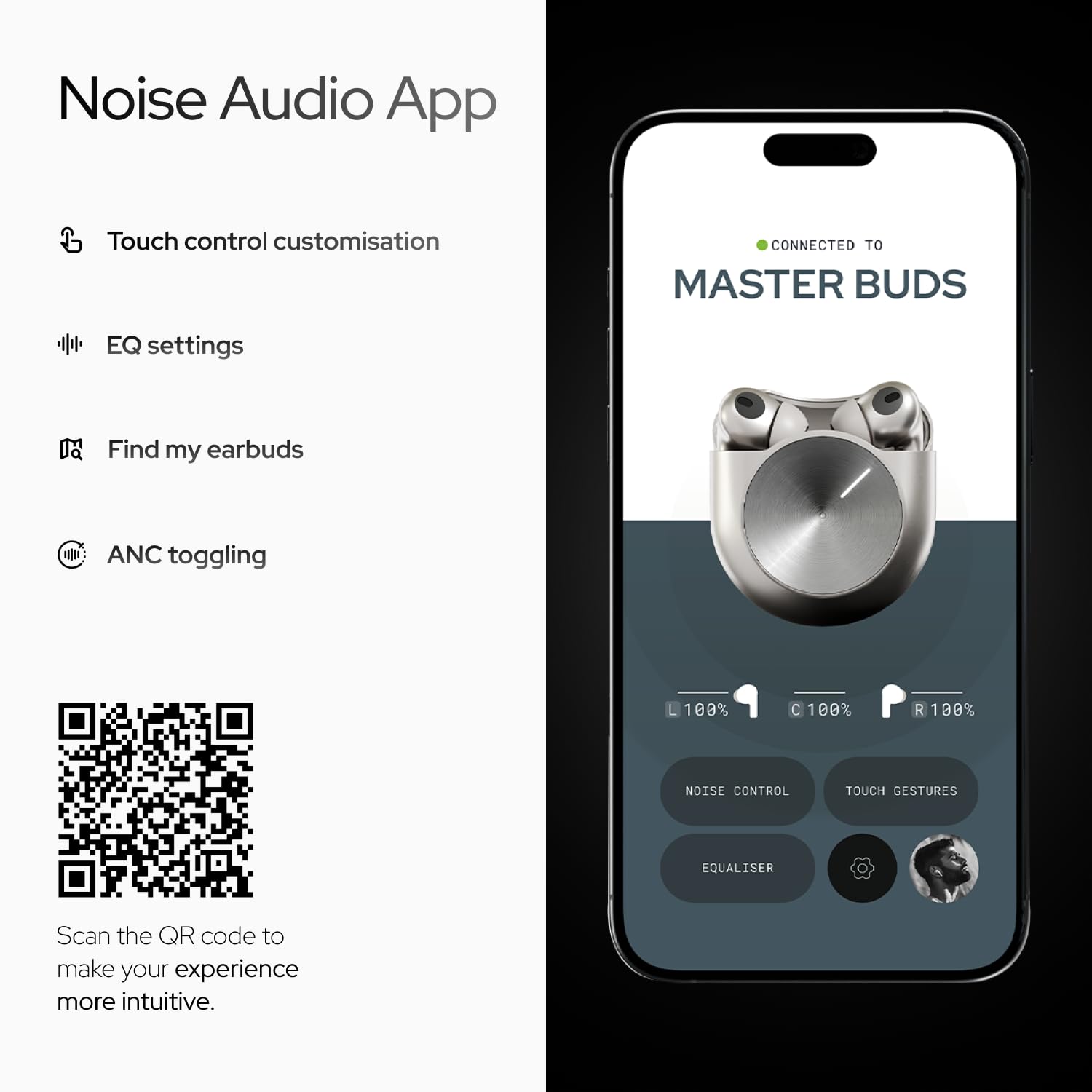 Noise Master Buds, Sound by Bose in-Ear Bluetooth Earbuds, Up to 49dB Adaptive ANC, LHDC 5.0, Immersive Spatial Audio, 44H Playtime with 6 mic ENC, Dual Pairing, IPX5 Ear Buds TWS (Silver)