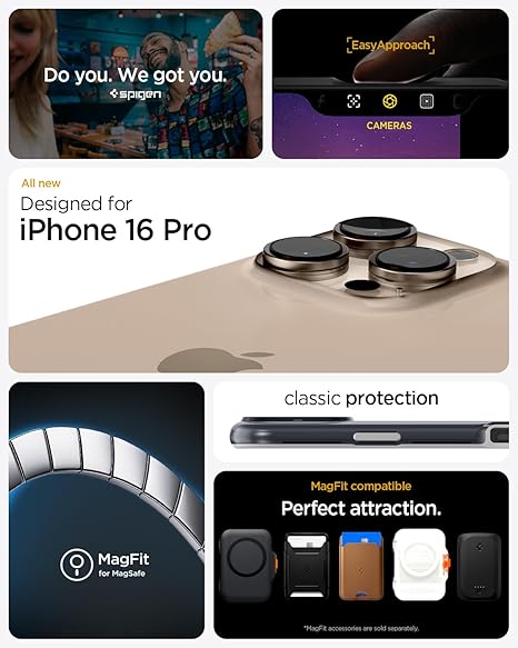 - [iPhone 16 Pro] Spigen Original patent design. Genuinely designed and manufactured by Spigen with the Precise Form-Fitted Fit for iPhone 16 Pro